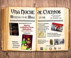 Hoy a las 19hs, en la Asociación Socorros Mutuos Italia -Av. Suárez 170- se llevará a cabo “Una noche de cuentos”, evento colectivo en el que se presentará el libro del escritor Matías Rossi, “Historias de misterio y terror chivilcoyanas” basadas en hechos reales, con muestra de obras, lectura de cuentos en vivo, presentación de un cortometraje y premiación del concurso “cuentos torqueanos” de la Revista Torque Tracción Cultural.-