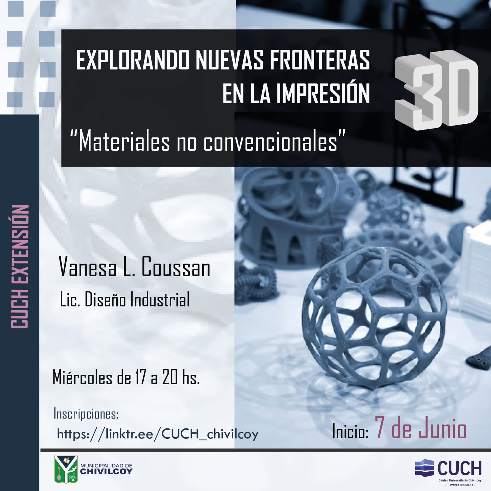 Taller: “Explorando las fronteras de la impresión 3D. Materiales no convencionales” Valeria Trongé mayo 24, 2023 e trata de un taller experimental, teórico-práctico, que permitirá a los asistentes crear sus propios materiales […] Compartí en las redes